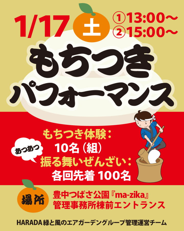 つばさ公園『ma-zika』でもちつきパフォーマンスを開催します。